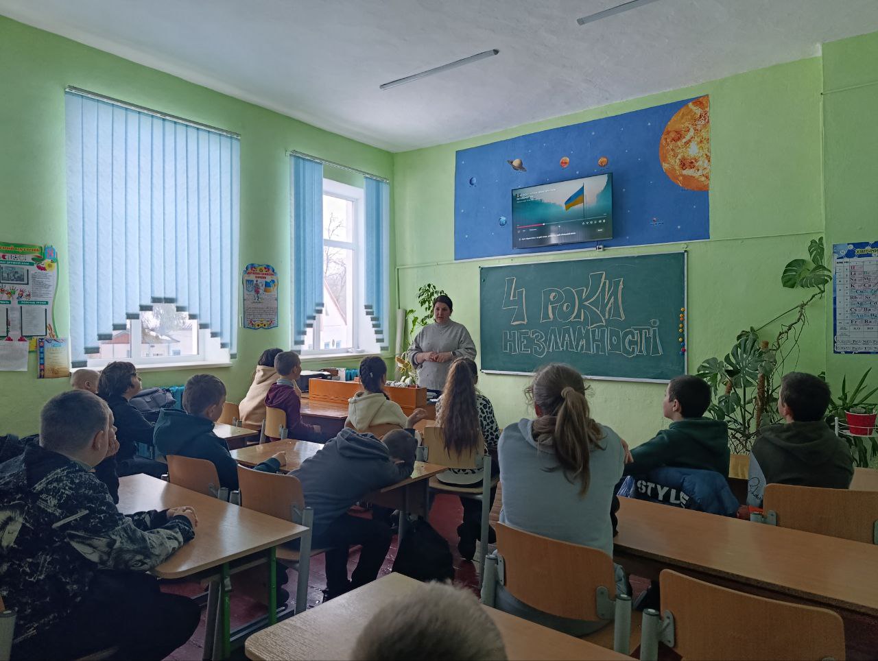 У 8 класі була проведена емоційна та змістовна виховна година «Чотири роки незламності: як це було і як це є». Разом із класним керівником учні згадали хронологію подій, говорили про мужність українського народу, про силу єдності та віру в Перемогу. Особливо зворушливими були роздуми дітей, адже вони — ровесники цієї війни, її свідки. Вони не просто читають про події в підручниках історії — вони проживають цей час разом з усією країною.