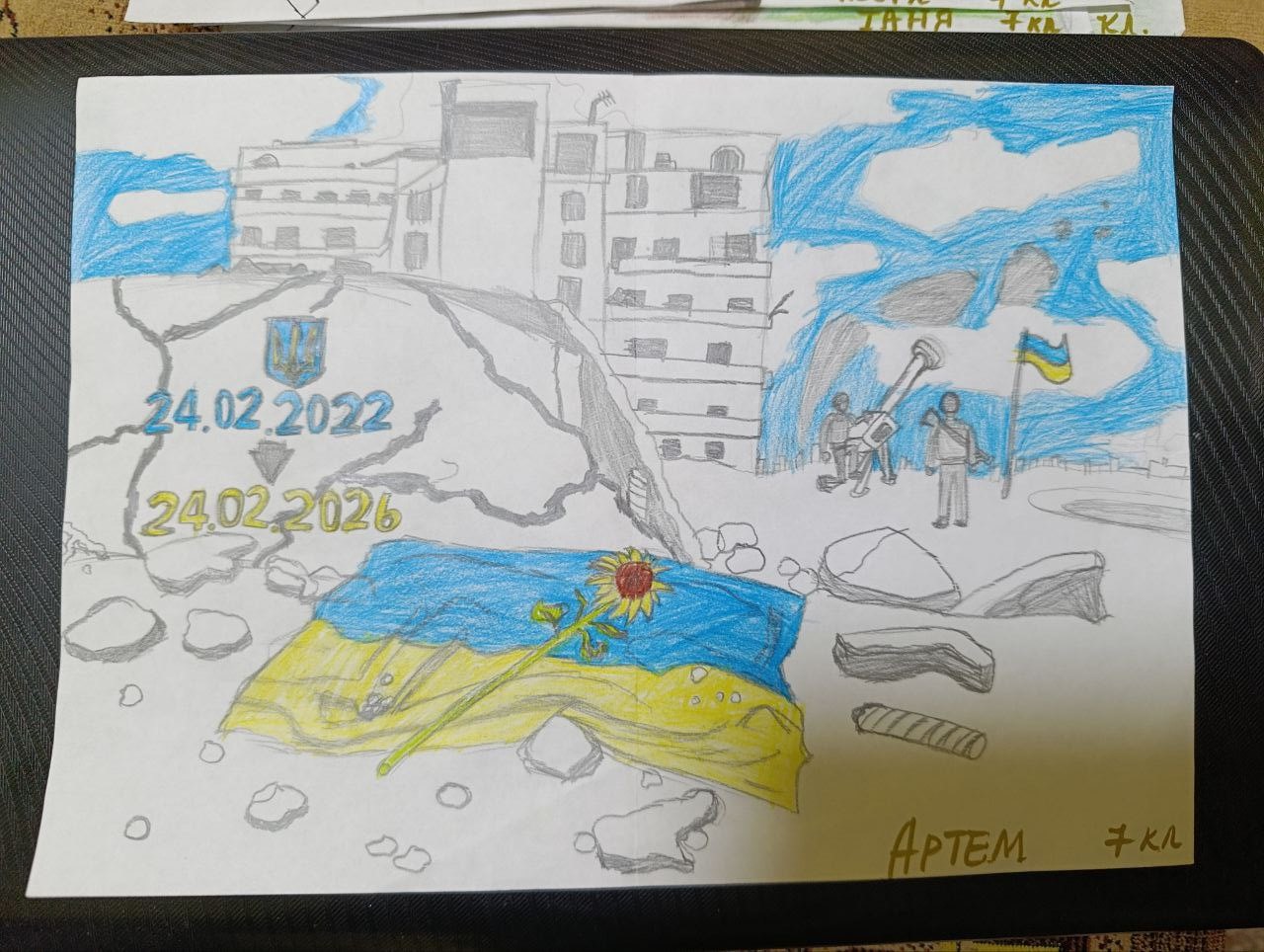 Також у гімназії було організовано виставку учнівських малюнків, присвячену темі незламності України. У творчих роботах діти відобразили свої почуття, мрії про мир, вдячність захисникам та любов до рідної Батьківщини. Кожен малюнок — це щире дитяче бачення війни і надії, біль і водночас світло віри.