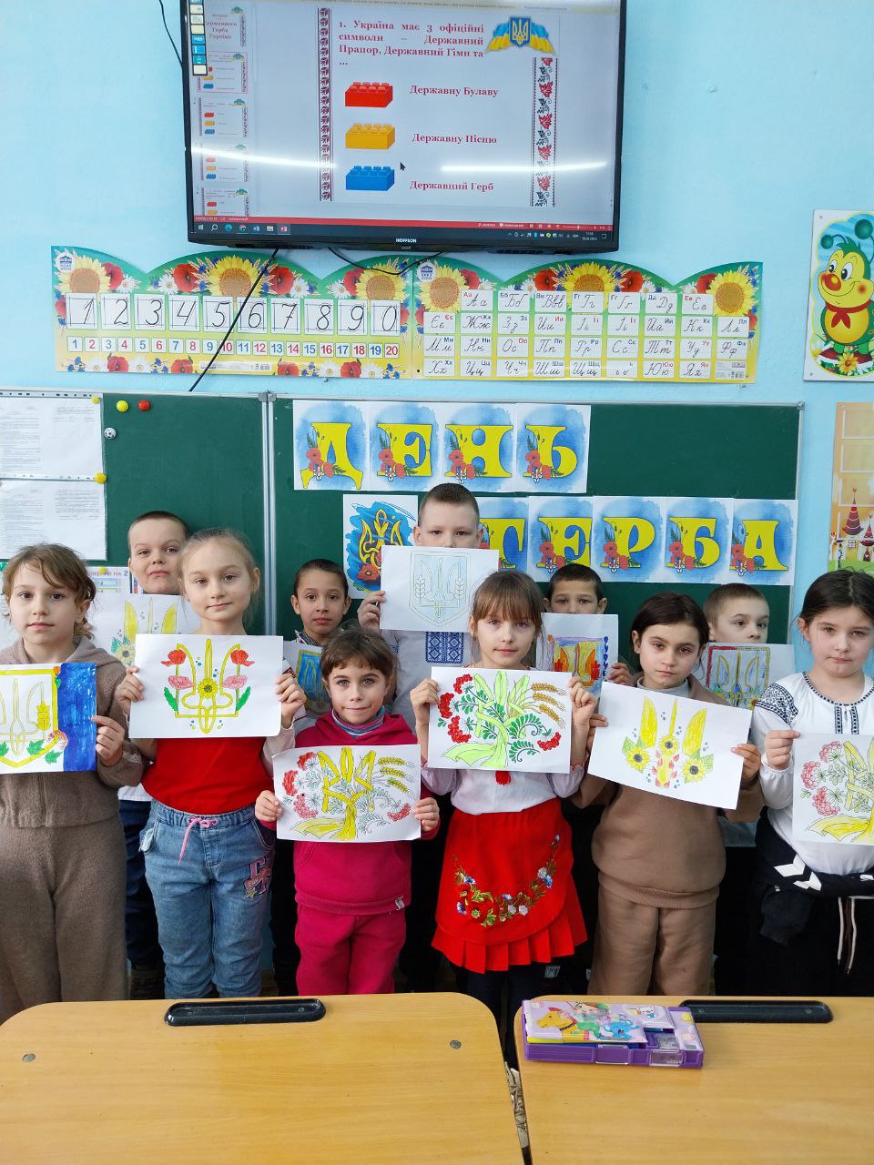 Третьокласники прослухали «Казку про золотий тризуб», виготовили тематичні браслети та розфарбували малюнки «Український Герб – наш оберіг», вкладаючи у свої роботи щирість, любов і повагу до державних символів. Світлана Снідевич